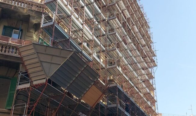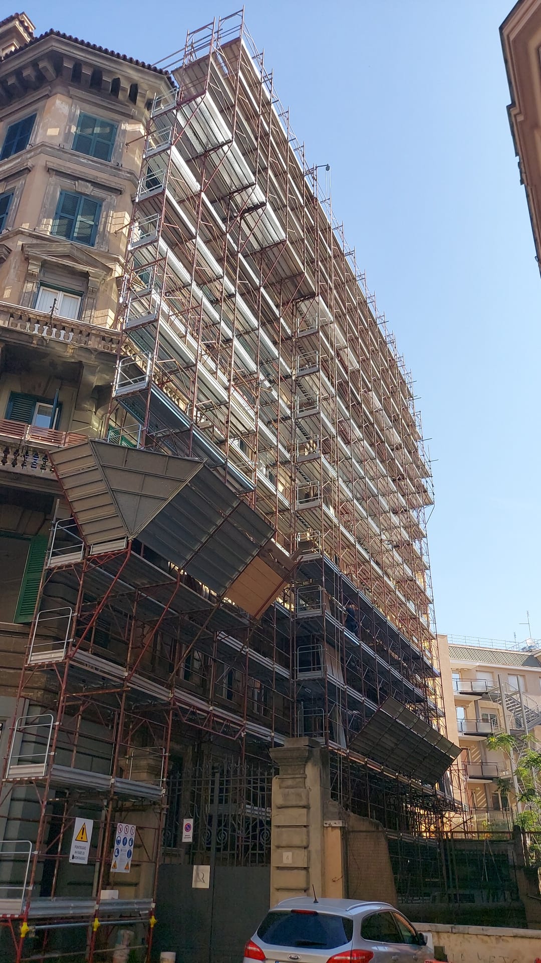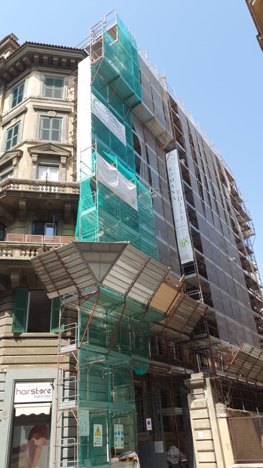 L’intervento si è concentrato nel recupero architettonico di questo storico palazzo. E’ stata eseguita la ripulitura ed il restauro dei fregi,delle cornici delle finestre e del cornicione. Successivamente, in collaborazione con la Direzione artistica del fabbricato, è stata ripristinata la vecchia finitura di tali elementi, donando al fabbricato l’antico splendore di un tempo. Per completare il fabbricato è stato svolto un lavoro di rifacimento della finitura della facciata del fabbricato con colore scelto della Direzione artistica.