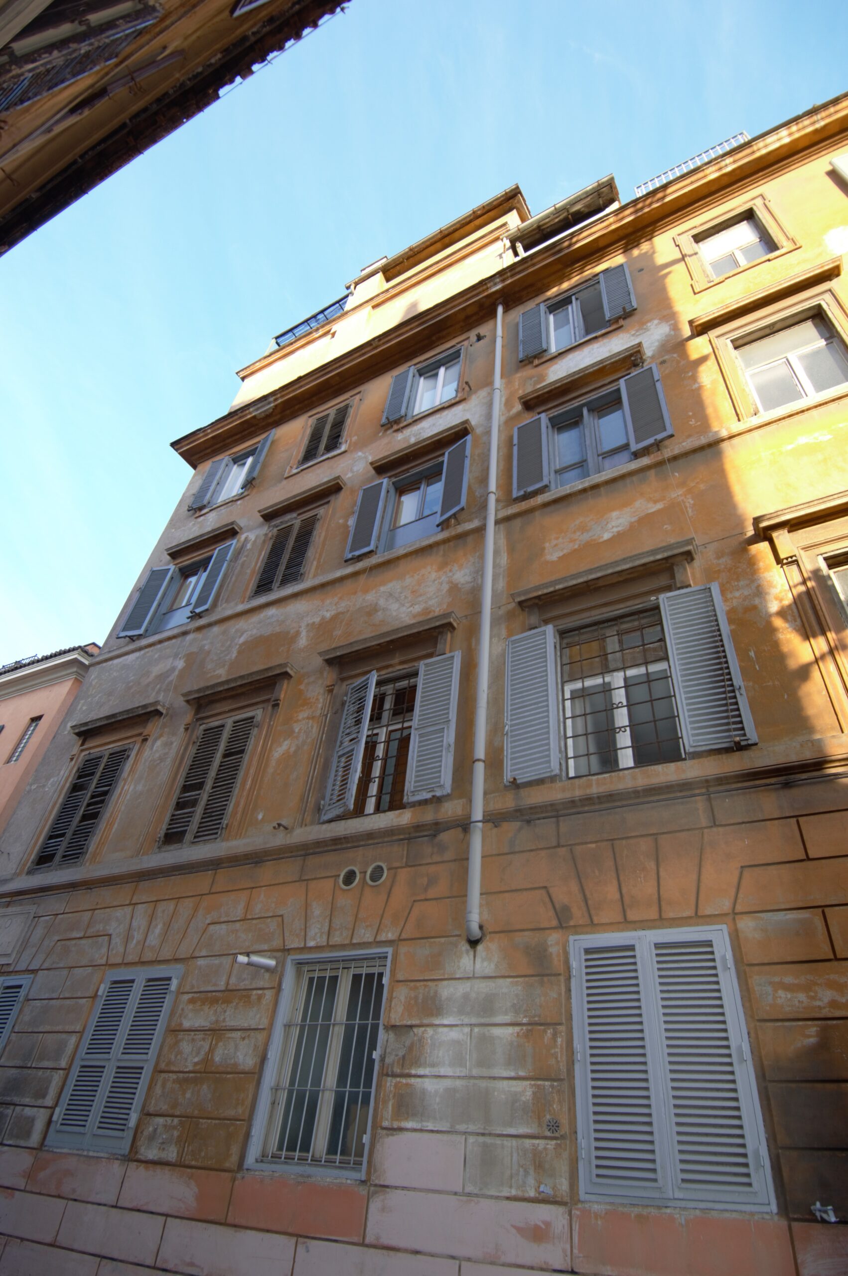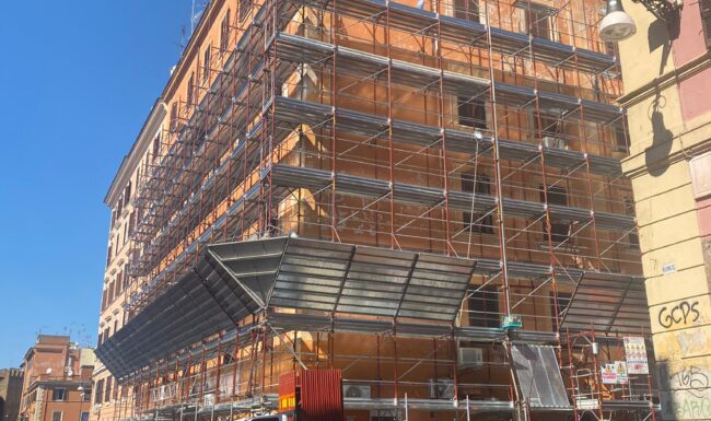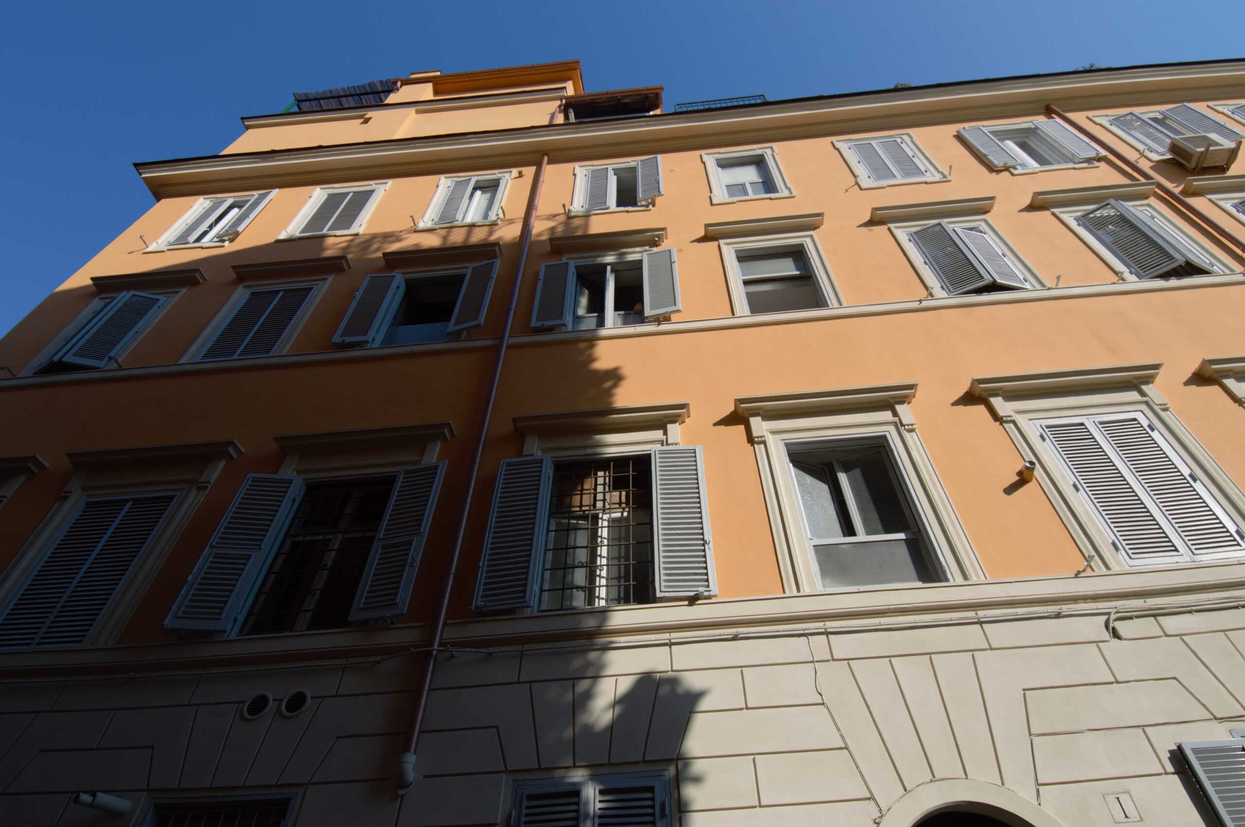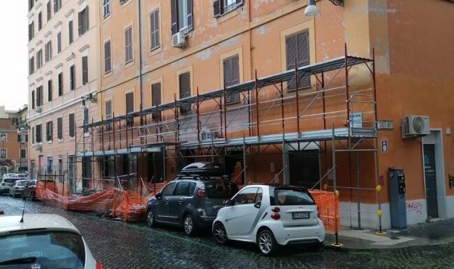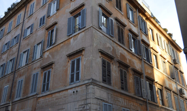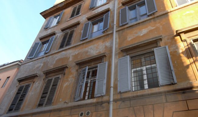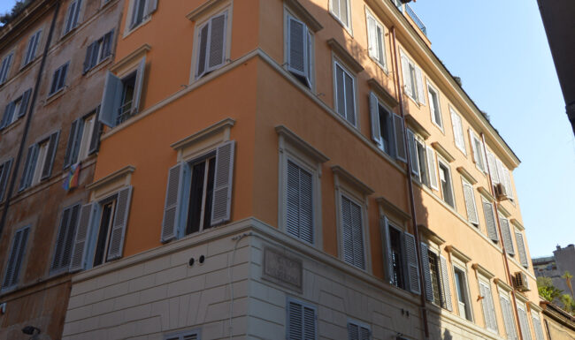Abbiamo cominciato con la ripulitura ed il restauro dei fregi, delle cornici delle finestre e del cornicione. Successivamente, in collaborazione con la Soprintendenza Capitolina, è stata ripristinata la vecchia finitura degli elementi decorativi. L’opera è stata conclusa con il rifacimento della finitura della facciata del fabbricato con colore a scelta da parte della Soprintendenza.