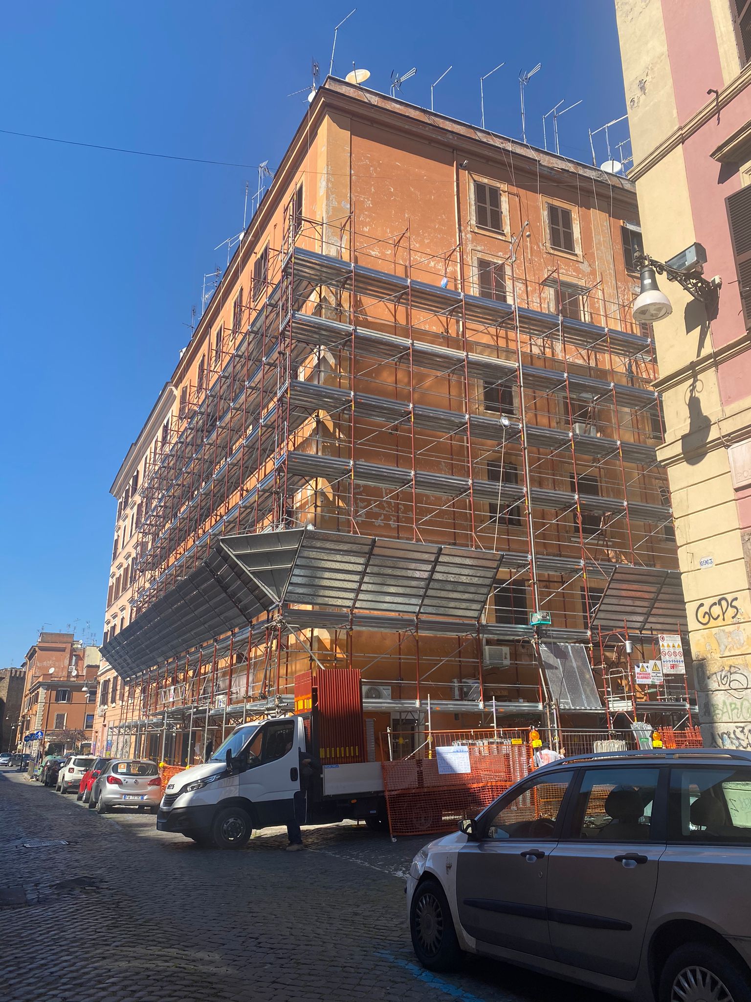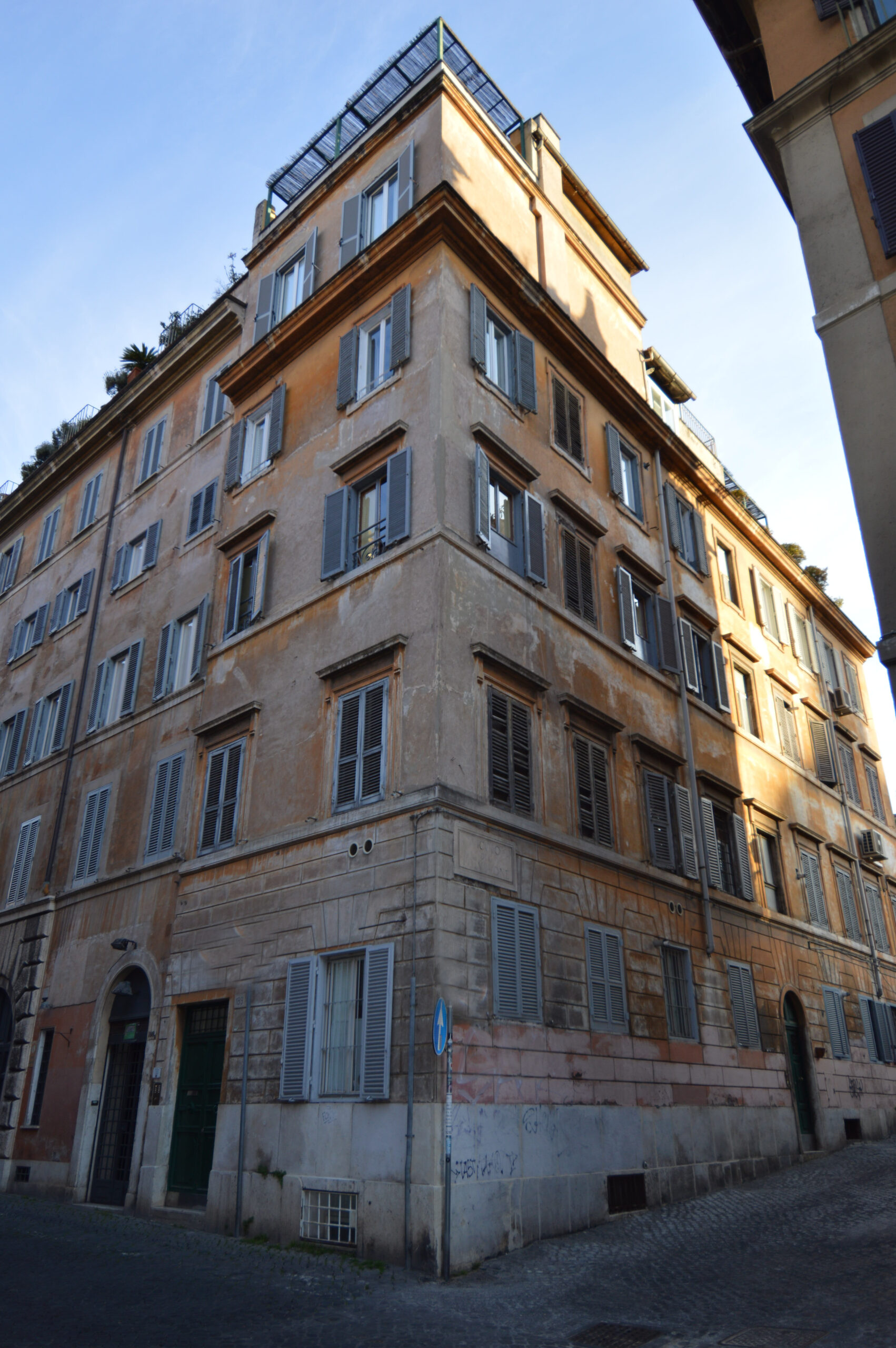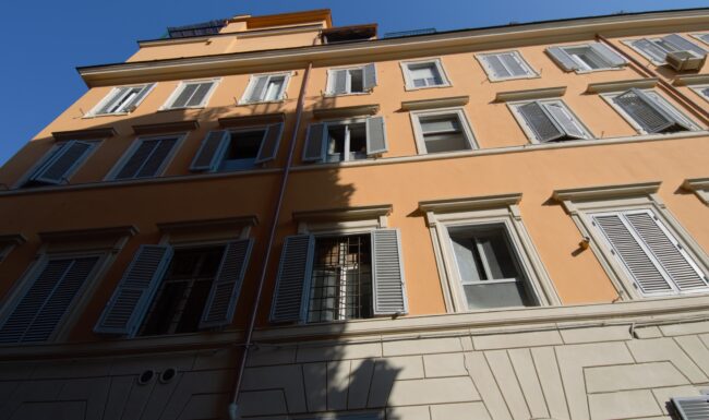 Abbiamo cominciato con la ripulitura ed il restauro dei fregi, delle cornici delle finestre e del cornicione. Successivamente, in collaborazione con la Soprintendenza Capitolina, è stata ripristinata la vecchia finitura degli elementi decorativi. L’opera è stata conclusa con il rifacimento della finitura della facciata del fabbricato con colore a scelta da parte della Soprintendenza.